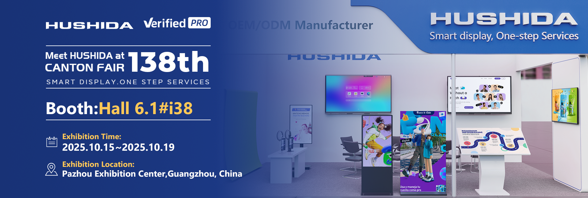 • Guangdong HUSHIDA Electronic Technology Co., Ltd.(referred to as HUSHIDA) is a leading smart commercial display innovation technology company in China. It is committed to providing high end one-stop solutions and services for global smart business display applications.